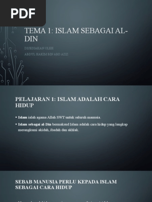 . 112 Pengertian Islam Sebagai Al Din. PENGENALAN Manusia adalah makhluk ciptaan Allah SWT yang mulia sempurna dan indah kejadiannya. Menurunkan wahyuNya memberi penumpuan yang serius terhadap persoalan akidah supaya setiap orang Islam selamat.